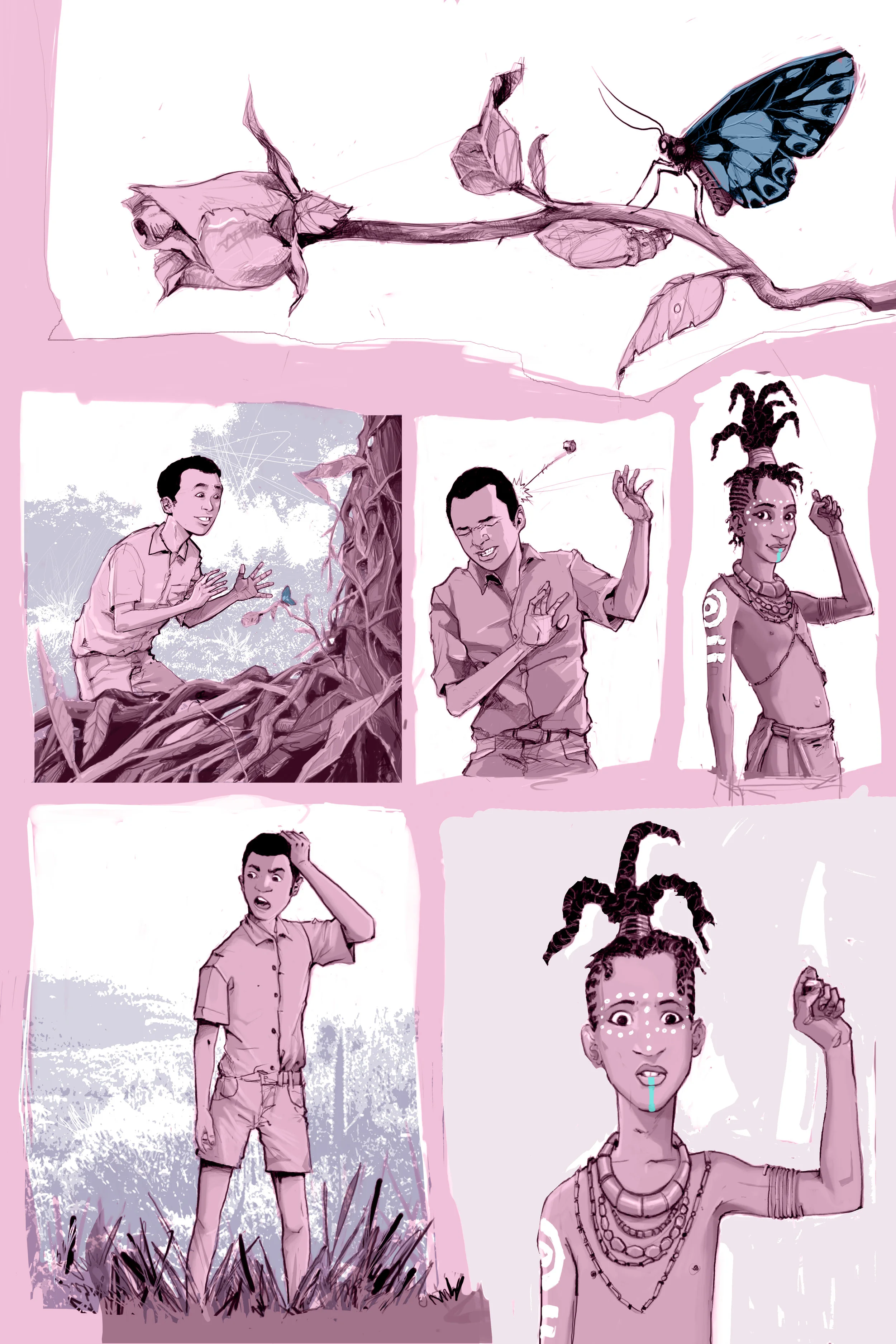 This is a graphic novel I've been working on about a Nigerian musician called Fela Kuti. The sequence below shows a dream sequence that is a prologue to the story.